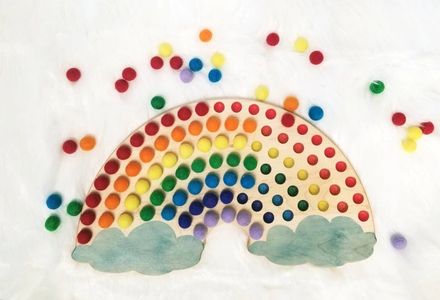 Sometimes fine motor work is associated with primary classrooms- and you should not stop there! We rotate a fine motor work often. From chop sticks with this rainbow from Mirus Toys, to origami, to needle and thread work.